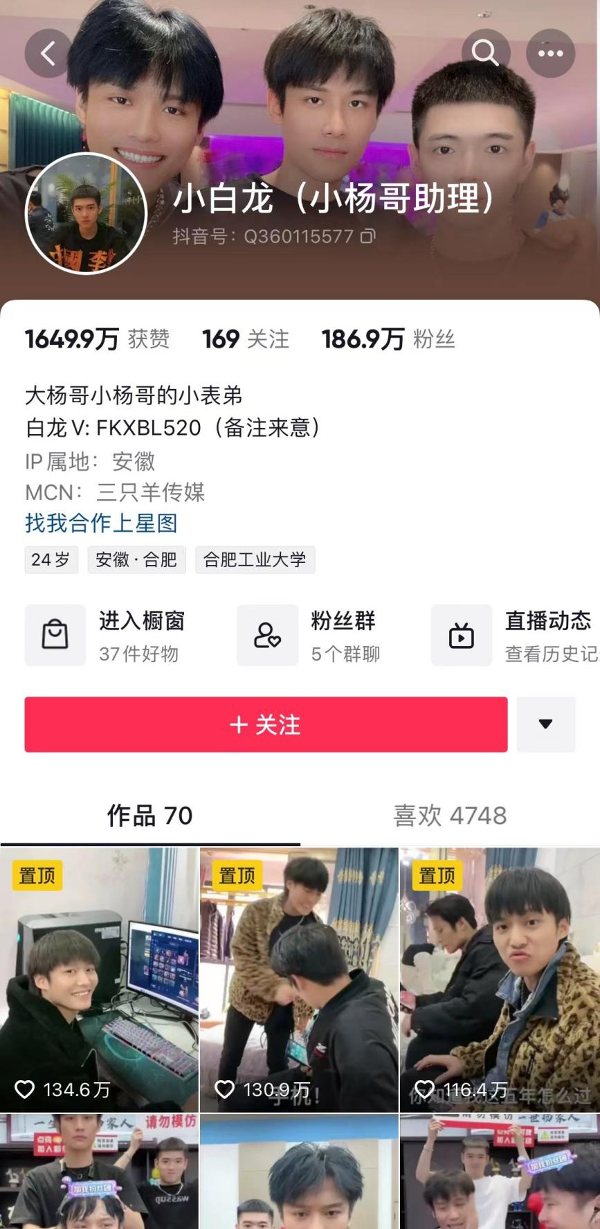 并且,小杨哥公司还签约了不少达人,如251.9万粉丝的乔妹、186.9万粉丝的小白龙(也是小杨哥助理)等等,这些达人的收益也会为公司加成。毕竟60几万粉丝的网红,一个月甚至就可以赚到几十万。不过,小杨哥5层办公大楼的租金成本、130+员工工资、设备费用等也是需要减去的。