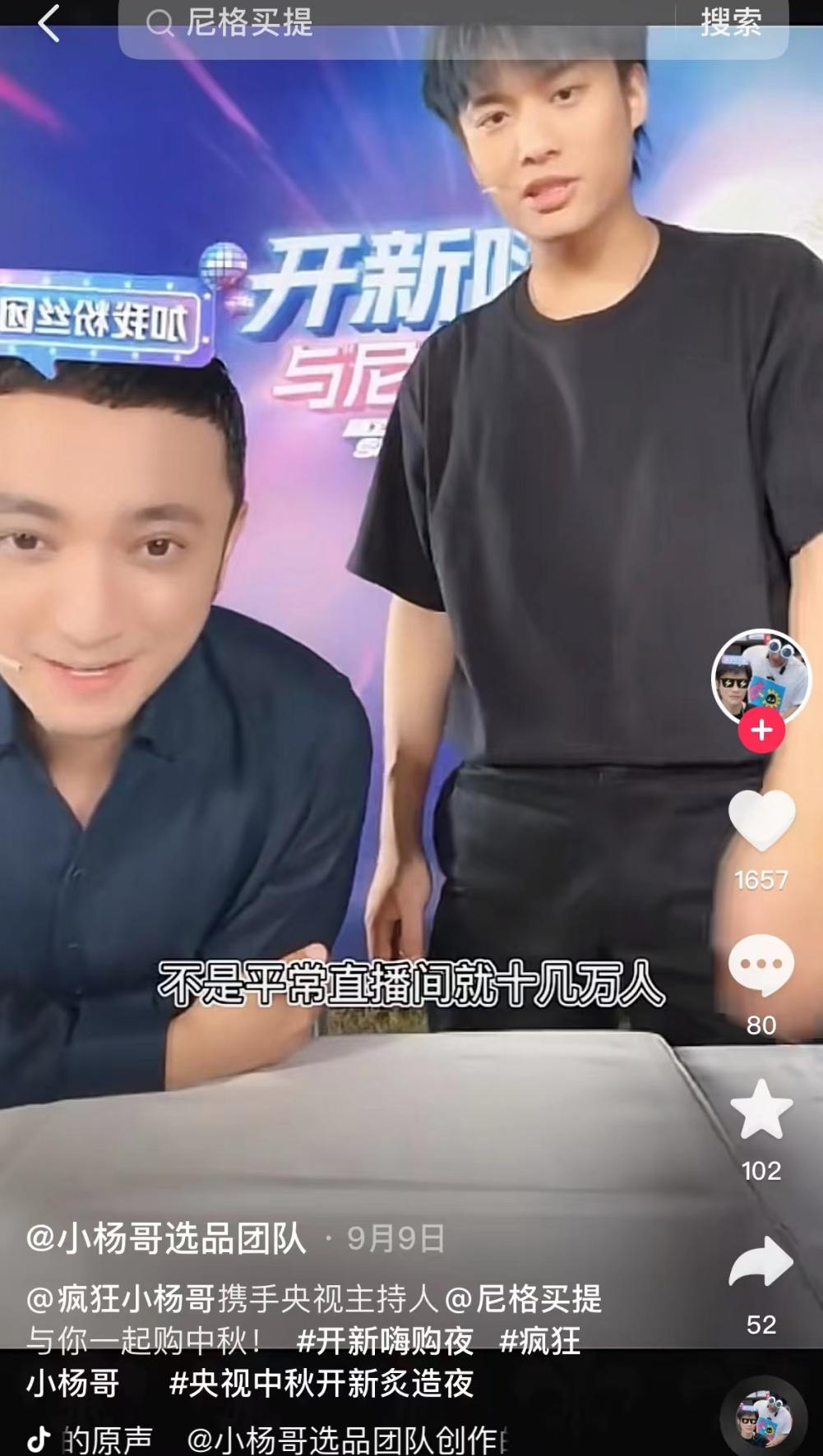 对于粉丝即将破亿的两兄弟来说,今年的中秋有些不一样。相信大家已经刷到了,小杨哥和大杨哥在中秋晚会上与尼格买提一起在央视直播带货的视频。疯狂小杨哥成为了继李佳琦、薇娅之后登上央视的热度主播,而此次登上央视也进一步说明了官方对疯狂小杨哥在电商领域的认可,以及从普通网红到主流主播身份的转变。