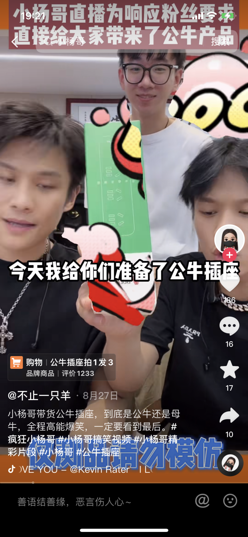 其实,这种剧情式的营销手法是小杨哥的“一贯作风”。一直以来疯狂小杨哥都凭借着“天花板”级别搞笑直播互动和整蛊视频为粉丝持续不断的带来快乐,像“公牛还是母牛”、“七度空间有其他温度么”、“19.9可以分多少期”等奇葩提问都是直播间里的“常规操作”。硬核解压的产品测评甚至把现场的品牌方吓得连连后退,但却让直播间的粉丝们乐在其中。
