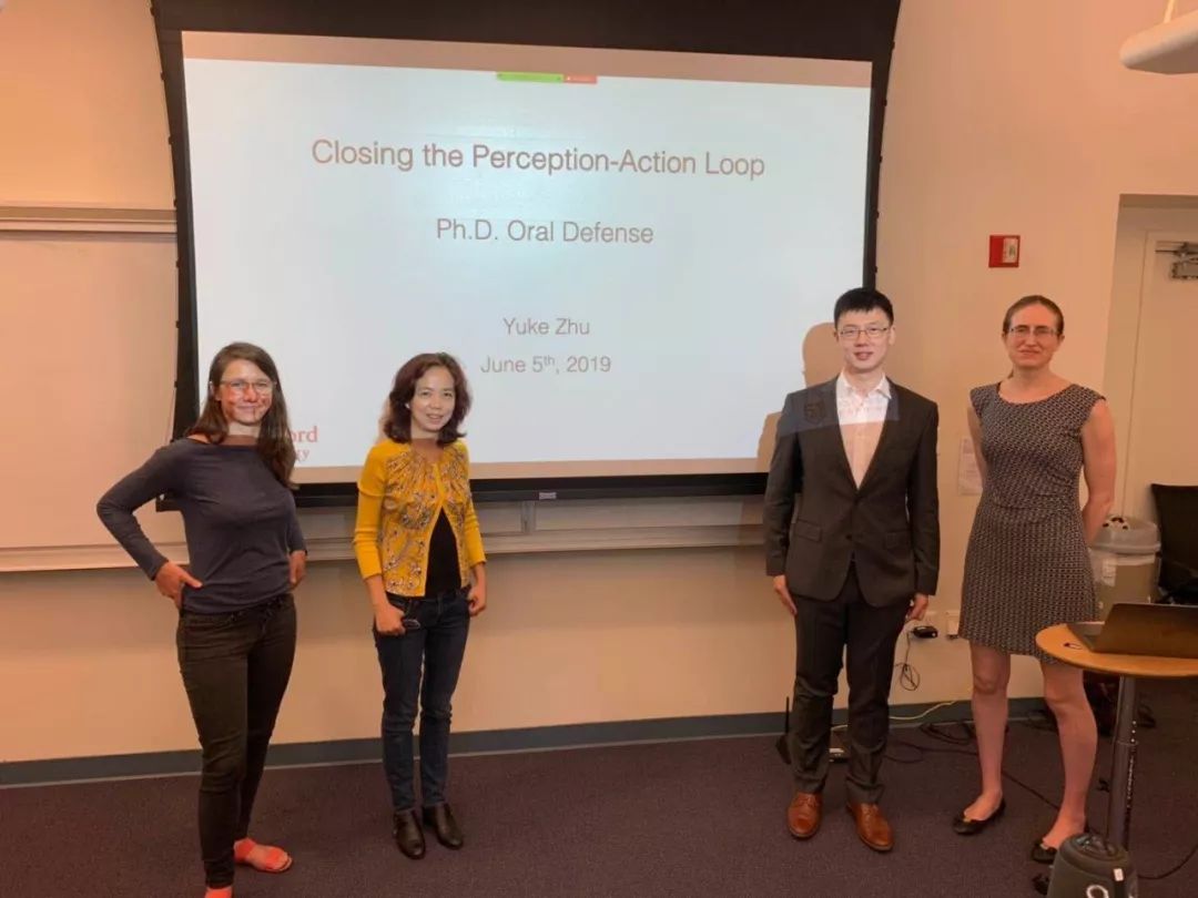今年 6 月,朱玉可在斯坦福大学的博士论文答辩后,与李飞飞等人合影。
