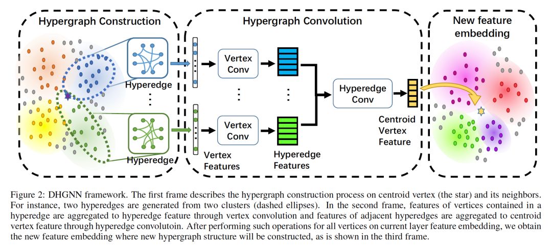 摘要:近年来,基于图/超图(graph/hypergraph)的深度学习方法引起了研究者的广泛关注。这些深度学习方法以图/超图结构作为模型的先验知识。然而,隐藏的重要关系并没有直接表现在内在结构中。为了解决这个问题,我们提出了一个动态超图神经网络框架(DHGNN),它由两个模块的堆叠层组成:动态超图构造(DHG)和超图卷积(HGC)。考虑到最初构造的超图可能不适合表示数据,DHG模块在每一层上动态更新超图结构。然后引入超图卷积对超图结构中的高阶数据关系进行编码。HGC模块包括两个阶段:顶点卷积和超边界卷积,它们分别用于聚合顶点和超边界之间的特征。我们已经在标准数据集、Cora引文网络和微博数据集上评估了我们的方法。我们的方法优于最先进的方法。通过更多的实验验证了该方法对不同数据分布的有效性和鲁棒性。