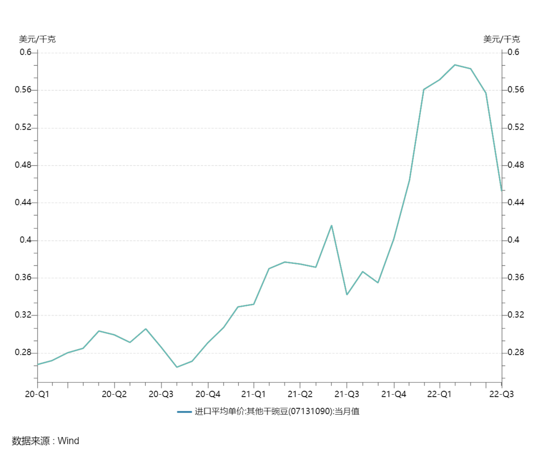 图:干豌豆进口平均单价;来源:Wind
