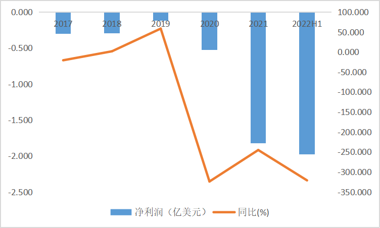 图:Beyond Meat各财年净利润及增速,2022H1为截至2022年7月2日止6个月;来源:Wind,36氪整理