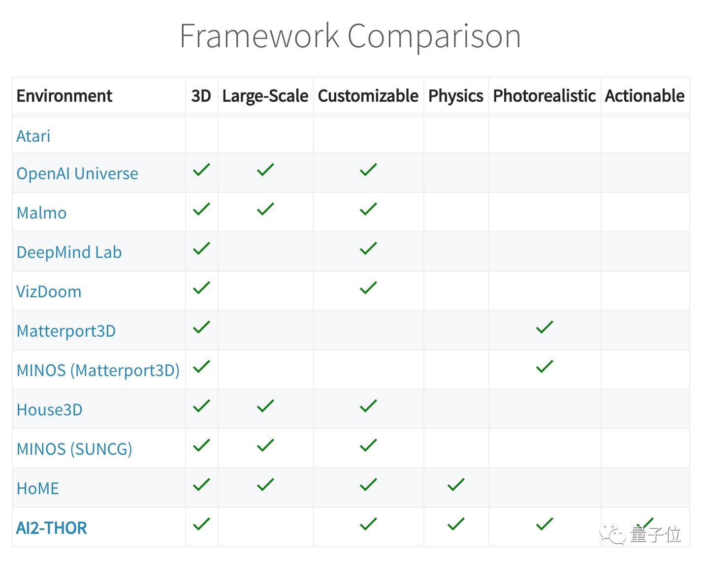 与同类框架相比,Agent可以操作场景中的物体,是AI2-THOR的一大亮点。它的真实性和对物理规则的整合,也是很少有框架具备的。
