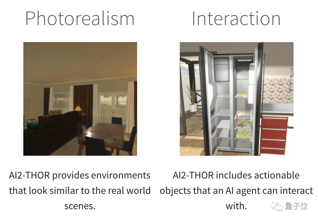 AI2-THOR是由艾伦人工智能研究所(AI2)、斯坦福大学、卡耐基梅隆大学、华盛顿大学、南加州大学合作完成的。它为人工智能Agent提供了一个室内装修效果图画风的世界,高度仿真,Agent可以和里面的各种家具家电交互——比如说打开冰箱、推倒椅子、把电脑放在桌子上等等。