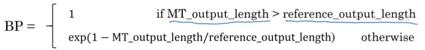 然后在乘一个值BP brevity penalty 目的是为了对短句子的惩罚: