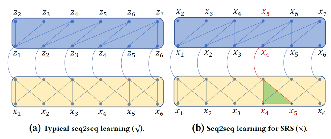 被认为是源和目标域。与标准的seq2seq场景(即,图1 (a)),我们在SRS任务中有以下两个特殊关系(见图1 (b)):