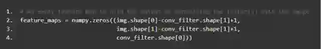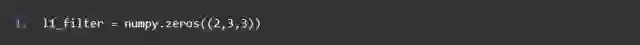 根据滤波器的数目和每个滤波器的大小来创建零数组。上述代码创建了2个3x3大小的滤波器,(2,3,3)中的元素数字分别表示2:滤波器的数目(num_filters)、3:表示滤波器的列数、3:表示滤波器的行数。由于输入图像是灰度图,读取后变成2维图像矩阵,因此滤波器的尺寸选择为2维阵列,舍去了深度。如果图像是彩色图(具有3个通道,分别为RGB),则滤波器的大小必须为(3,3,3),最后一个3表示深度,上述代码也要更改,变成(2,3,3,3)。