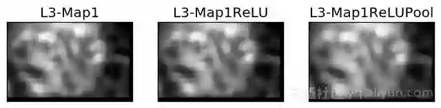 从代码中可以看到,l3表示第三个卷积层,该卷积层使用的卷积核为(1,7,7),即1个7x7大小的卷积核(滤波器)与第二层的输出进行卷积操作,得到1个特征图。后续接着进行ReLU激活函数以及最大池化操作。将每个操作的结果可视化,如下图所示: