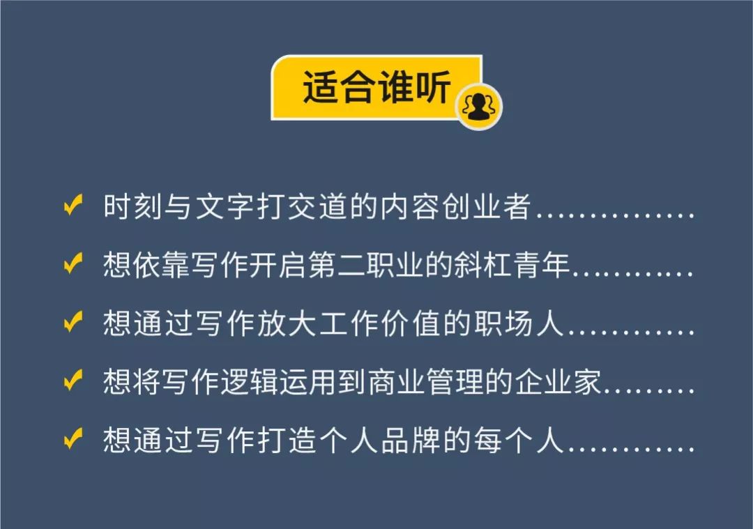 如果你身边的朋友、同事、员工、上司在写作上有迷思和痛苦,别忘了把今天的文章分享给ta,邀请ta一起参加课程,我们一起成长,一起迭代。