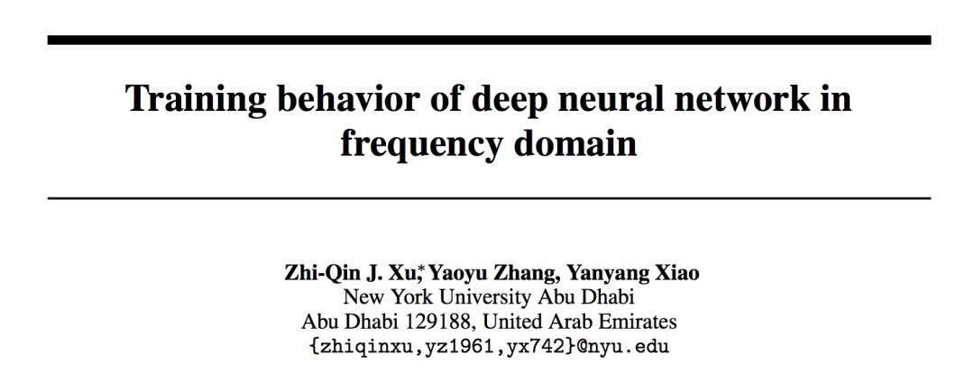 [1]. Zhi-Qin J. Xu, Yaoyu Zhang, Yanyang Xiao. Training behavior of deep neural network in frequency domain, arXiv preprint arXiv: 1807.01251. (May 18, 2018 submitted to NIPS, first submitted to arXiv on Jul 3, 2018)