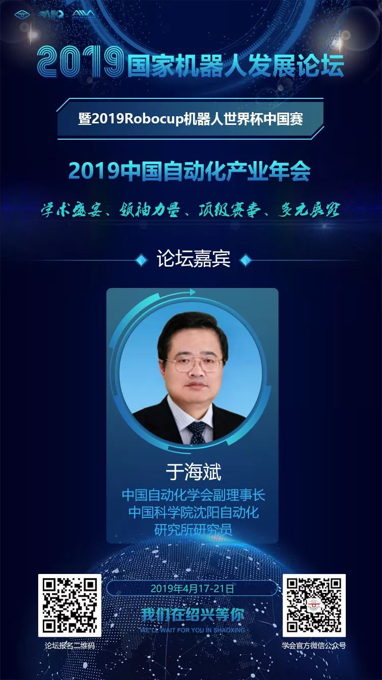 2019国家机器人发展论坛暨Robocup机器人世界杯中国赛以及2019年中国自动化产业年会将于2019年4月17-21日在绍兴组织召开,同期将开展科技成果展示,聚焦多种类智能机器人的发展,应用与创新,壮大中国机器人事业,为实现中国制造强国梦而作出贡献。此次活动由中国自动化学会、中共绍兴市委组织部、中共绍兴市柯桥区委、绍兴市柯桥区人民政府主办,中国人工智能产业发展联盟(AIIA)联合主办。接下来为大家带来本次论坛的亮点前瞻。