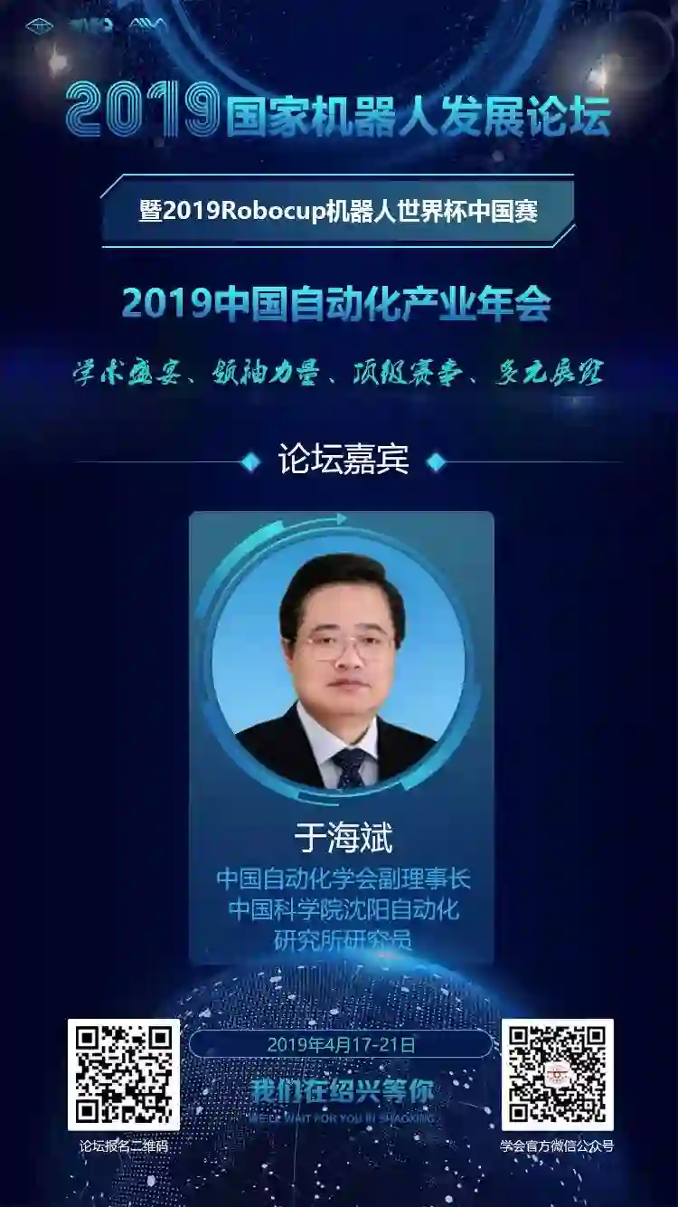 2019年国家机器人发展论坛将于2019年4月17-21日在浙江绍兴举办,敬请关注学会官方微信公众号和网站,了解最新论坛信息。