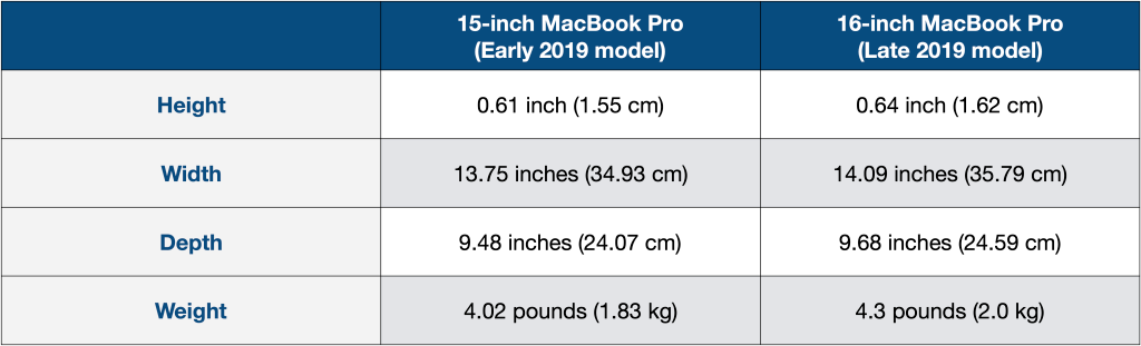 16 英寸 MacBook Pro 比上一代产品更大,更厚,更重。对于通常更关注性能的专业用户来说,这应该不是什么问题。我们来看看 MacBook 的尺寸和重量规格。