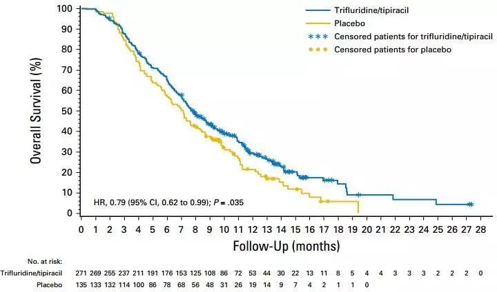图2:TAS-102组和安慰剂组的OS曲线