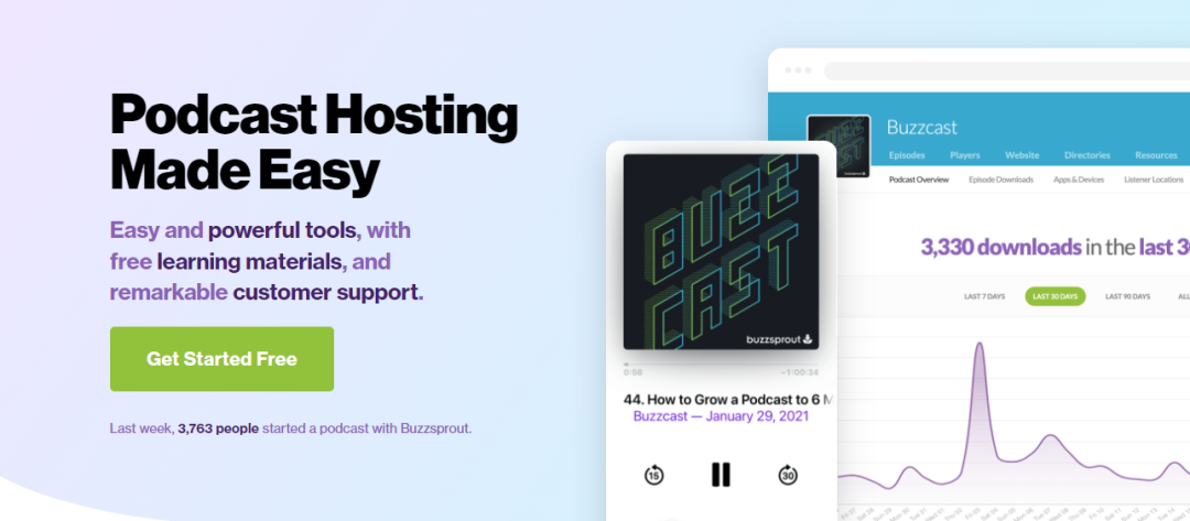 Buzzsprout是一套极易上手的播客在线托管分发方案,目前加入了超过100,000名活跃的播主。其与领先的播客工具集成,能够提供无缝的制作体验。