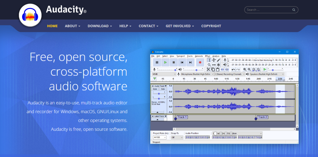 Audacity 是一款免费开源的音频处理软件,支持专业的多轨道编辑和录制多个输入源(如麦克风、混音器、播客、流音频)。Audacity 拥有相对专业的操作界面,音频录制、编辑以及音频效果增强功能齐全,可以看作是Audition的替代品。