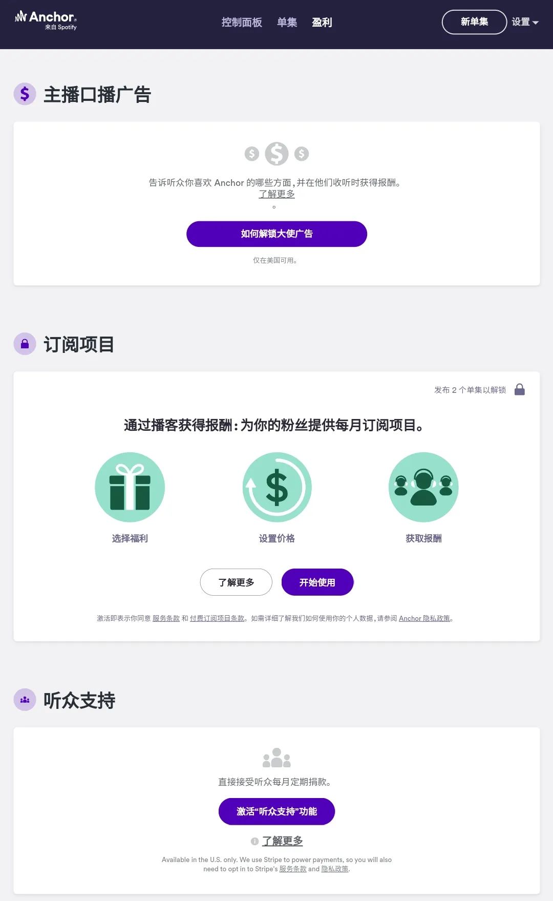 Anchor具有无限的存储空间,并且对可以主持的节目数量没有限制,并且还可以通过Anchor提供的各种不同来源赚取收入。