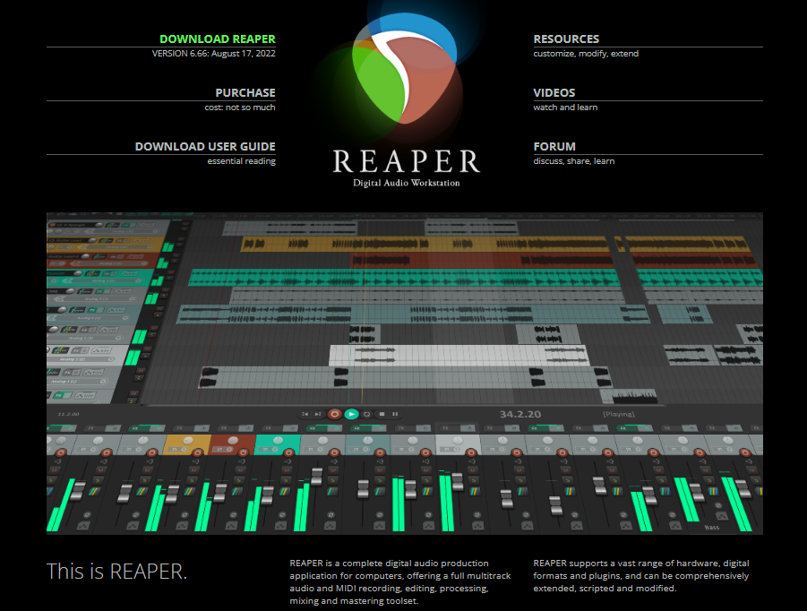 Reaper是工作站级别的专业音乐制作软件,能够帮助用户进行多音轨录制和音频编辑,Reaper具备灵活且友好易用的界面,对音频爱好者和专业人士同样适合。Reaper支持DirectX/VST plug-ins 和ASIO驱动,VSTi乐器等,包含多轨录音、音频混缩、MIDI编辑与母带处理等多项功能,采用64位音频引擎,支持目前流行的各类DX、VST音频插件与软音源,并自带多个品质出色的音频效果器。