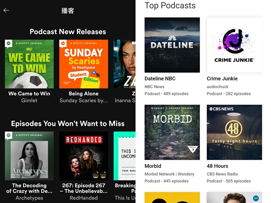 得益于这些,投资人和创业者开始涌入播客领域。伴随着产品的激增,越来越多的内容和受众也纷至沓来。大平台诸如苹果、Spotify、亚马逊则掌握巨大的资源与优势主导播客下一阶段的发展,而像Wondery这样的新兴播客平台也在找寻自己的差异点。