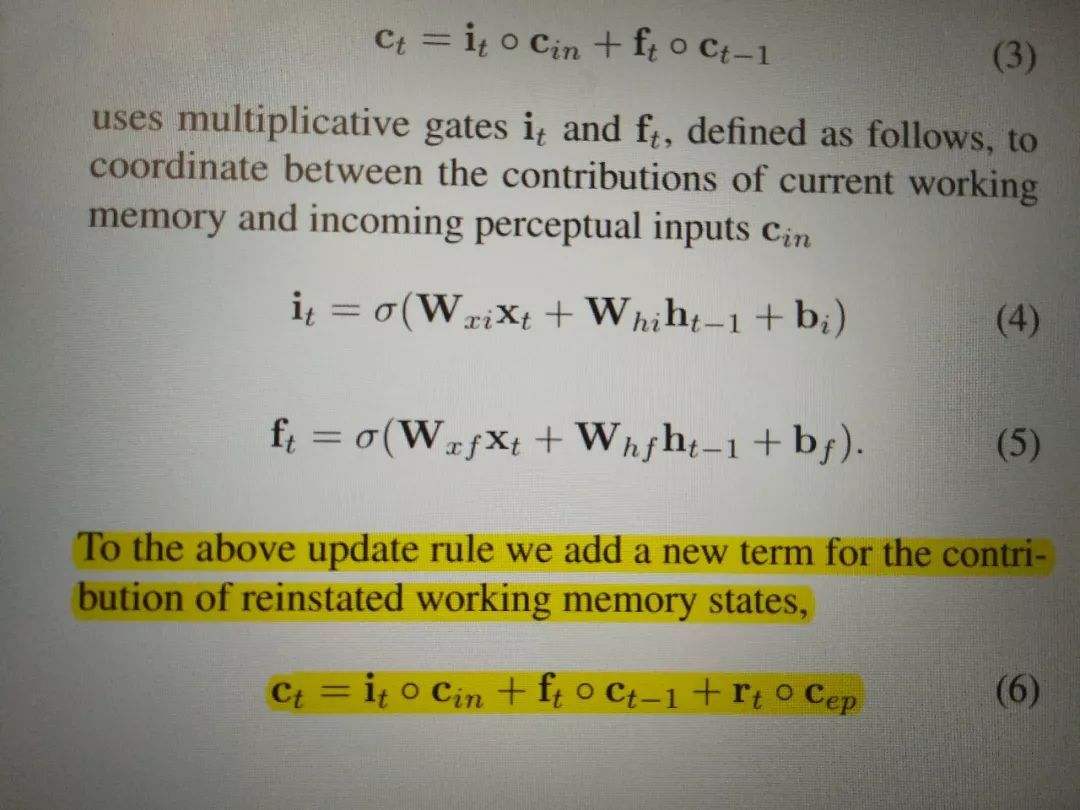 如公式,r-gate就是图中rt,就是在LSTM中加一个门,它能让网络自己去调用和把握,自己去优化出最好的开放和关闭节奏,而不是规定死了每次都要用DND的内容完全决定决策。