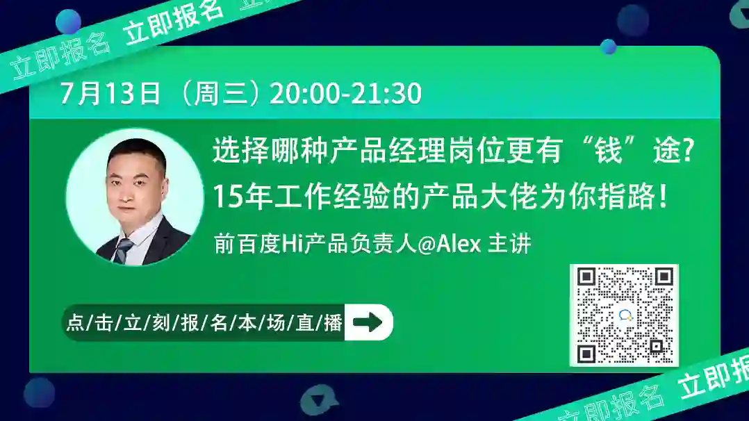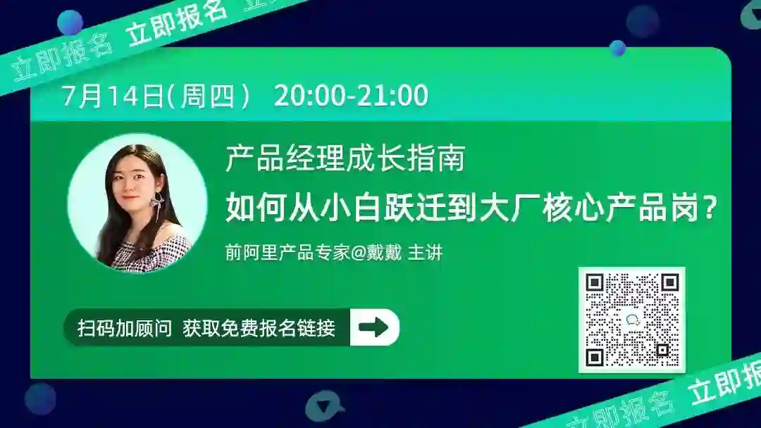 7月13日(周三晚)20点,前阿里产品专家将在线拆解3个经典案例,教你摆脱产品工具人&找准赛道&向上生长,突破职业瓶颈。