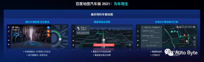 域控制器替代多ECU以自由调控域内硬件和高效分配算力是未来趋势,也是集度实现更为丰富座舱交互能力的基础。百度Apollo在发布百度地图汽车版2021时就曾提到,该软件已实现了和车辆硬件数据的多维融合,包括地图和摄像头结合的AR增强现实导航、利用多屏显示提升驾驶中的引导安全。