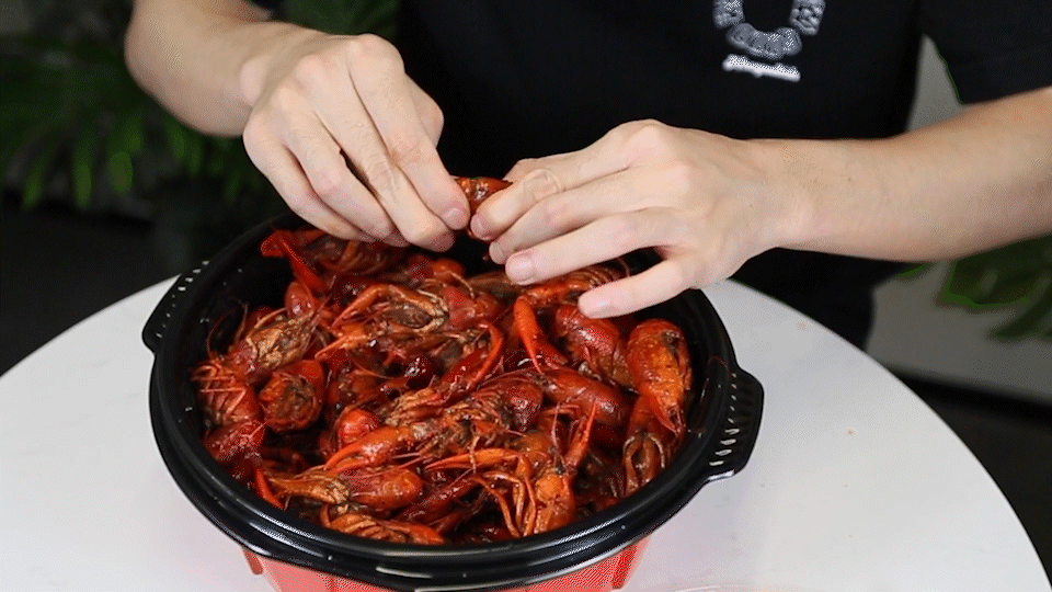 一剥一拔,轻松收获一枚完整小龙虾肉!