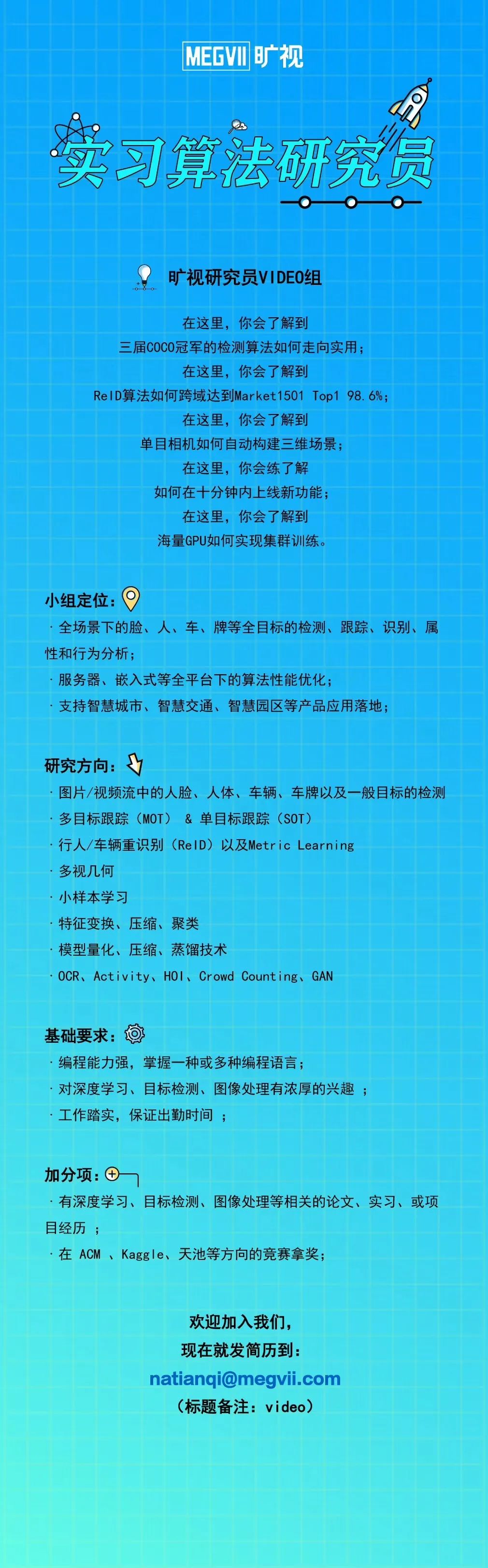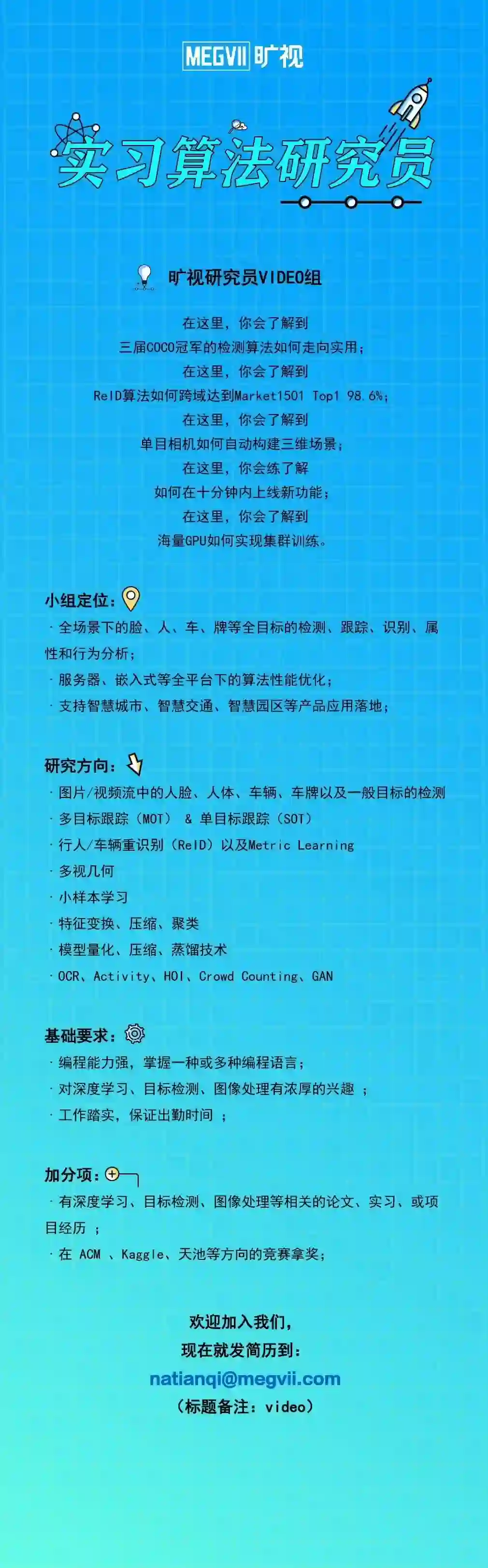 邮箱主题/简历命名格式:video组实习申请+姓名+CVer推荐