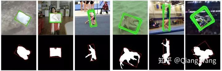 为了方便表述,早期的跟踪算法都是坐标轴对齐的的矩形框。但随着跟踪精度的不断提升,数据集的难度在不断提升,在VOT2015时即提出使用旋转矩形框来作为标记。在VOT2016的时候提出自动的通过mask来生成旋转框的方法。更为本质的,我们会发现,这个旋转的矩形框实际上就是mask的一种近似。我们所要预测的实际上就是目标物体的mask。利用mask才能得到精度本身的上界。