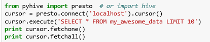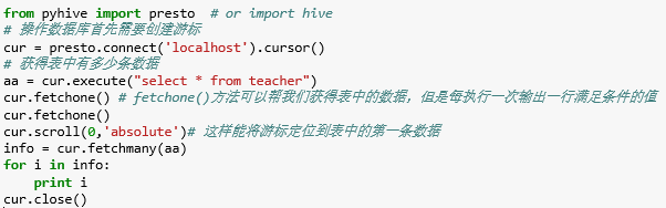 python中用于连接HiveServer2的客户端有3个:pyhs2,pyhive,impyla。官网的示例采用的是pyhs2,但pyhs2的官网已声明不再提供支持,建议使用impyla和pyhive。