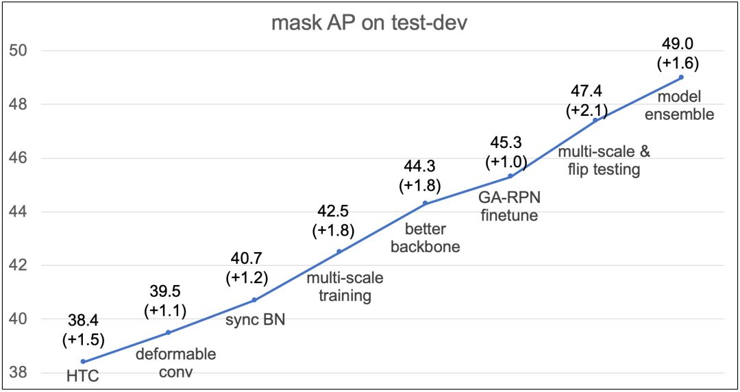 除了纯净版HTC之外,在Paper里我们还给出了在COCO Challenge里面用到的所有步骤和技巧的涨点情况(良心买卖有木有)。