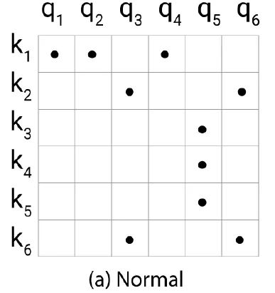 这个哈希过程就如图2所示:根据queries或者keys的哈希值把它们分到不同的桶里面,在图中 在1号桶, 在2号桶, 在3号桶。