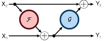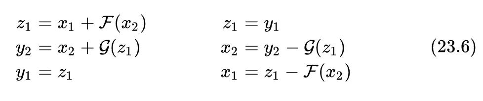 这一部分的想法来自论文:The Reversible Residual Network: Backpropagation Without Storing Activations,即使用可逆残差网络代替标准残差网络。