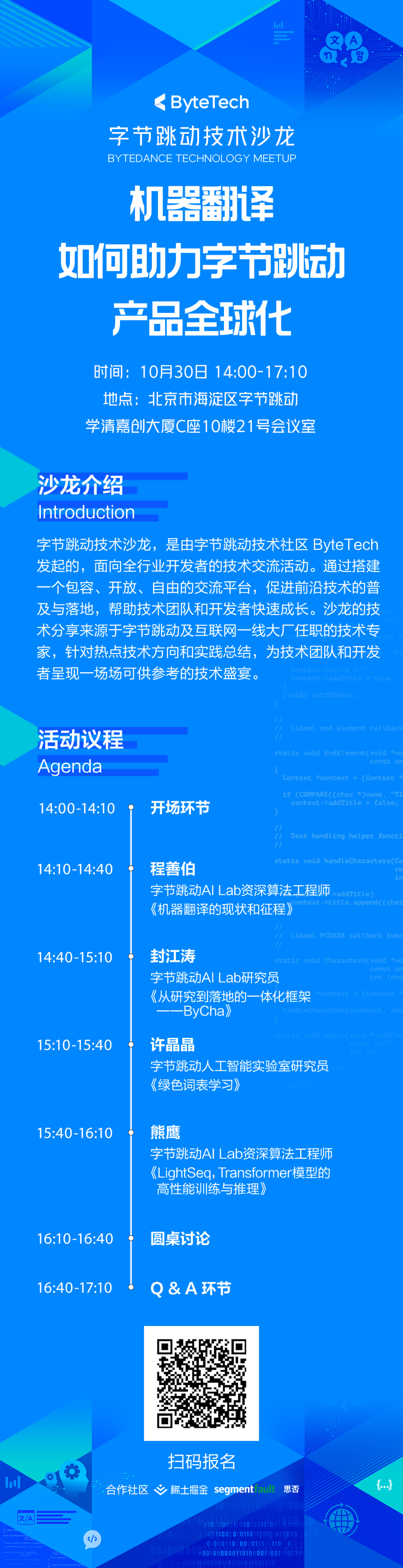 目前,技术沙龙免费对外开放报名中,点击文末 阅读原文 报名,一起探秘「机器翻译」在字节跳动产品里的应用!