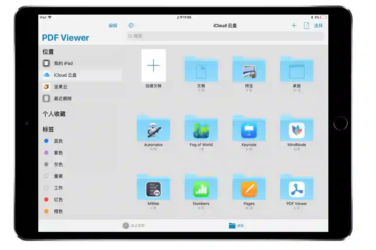 坚果云解决了这一痛点。作为一款全平台 App,坚果云上传和同步速度快、安全稳定,在电脑上可以选择文件夹进行实时同步。这样,我便可以将文件上传至坚果云,然后在 iPad 的「文件」里打开即可(坚果云支持 iOS 11的「文件」App)。