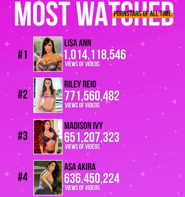 图|Pornhub 抓出了成立 10 年来最受欢迎的情色明星。(图片来源:Pornhub Insights)