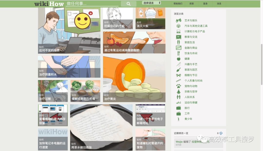 WikiHow 是一个基于Wiki 的社区,它主要教你“怎么做”,它也同时支持CC 协议。