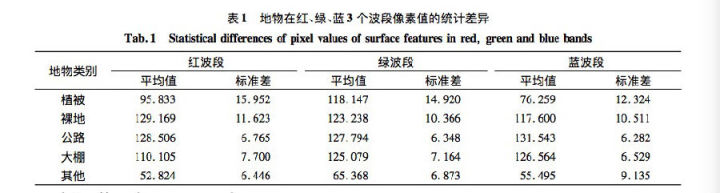 R、G、B 分别表示红波段、绿波段和蓝波段像素值,r、g、b 分别表示归一化后相应波段像素值。