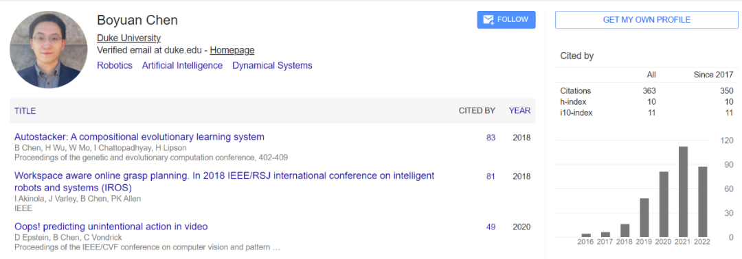 论文一作陈博源现任杜克大学助理教授,负责领导通用机器人实验室(General Robotics Lab)。他博士毕业于哥伦比亚大学计算机科学专业,主修计算机视觉、机器学习和机器人专业,师从世界机器人、数据科学、3D 打印先驱 Hod Lipson 教授。他曾在国际人工智能和机器人领域顶级会议(NeurIPS、IROS、GECCO、Humanoids 等)发表多篇论文,担任多个国际会议审稿人(CVPR、ICML、ICLR、PRCV 等)。此外,他还曾获 ACM GECCO 学生奖学金、中国政府奖学金、中国科学院空间科技创新奖学金等。