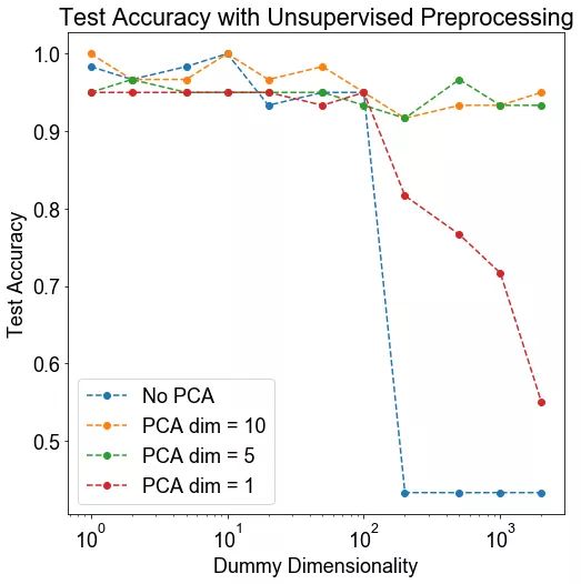 结论: 当维度非常大时,无监督的 PCA 步骤可以显著改善下游分类。