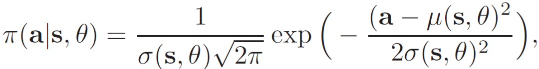 基于条件概率π(a_t | s_t-1, θ)确定动作 a_t。然后,在一个大的离散作用空间上学习概率质量函数的问题就转化为在一个二维连续空间中寻找参数 (μ(s,θ),σ(s,θ)) 的问题。
