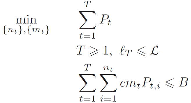 其中,T 表示 epoch 的总数。本文所述任务的目标是最小化作业完成时间,即在一定奖励预算 B 约束下解决以下优化问题: