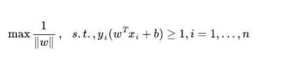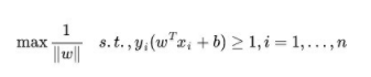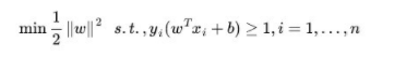 的最小值,所以上述目标函数等价于(w由分母变成分子,从而也有原来的max问题变为min问题,很明显,两者问题等价):
