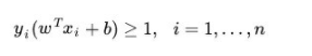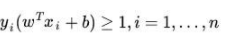 而超平面(w,b)关于T中所有样本点(xi,yi)的函数间隔最小值(其中,x是特征,y是结果标签,i表示第i个样本),便为超平面(w, b)关于训练数据集T的函数间隔: