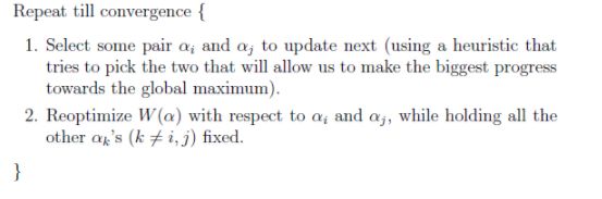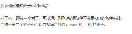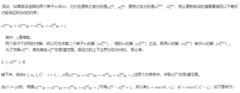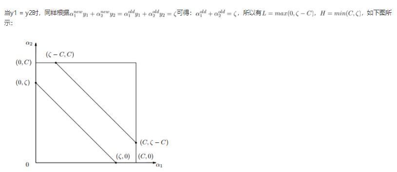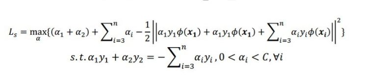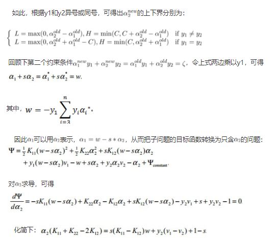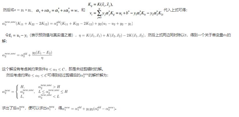 (3)在求得L(w, b, a) 关于 w 和 b 最小化,以及对 α 的极大之后,最后一步则可以利用SMO算法求解对偶问题中的拉格朗日乘子 α