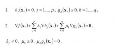 而KKT条件就是指上面最优化数学模型的标准形式中的最小点 x* 必须满足下面的条件: