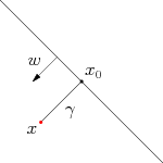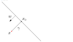 假定对于一个点 x ,令其垂直投影到超平面上的对应点为 x0 ,w 是垂直于超平面的一个向量,