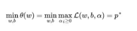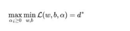 这里p*用表示这个问题的最优值,且和最初的问题是等价的。如果直接求解,那么一上来便得面对w和b两个参数,而αi又是不等式约束,这个求解过程不好做。不妨把最小和最大的位置交换一下,变成: