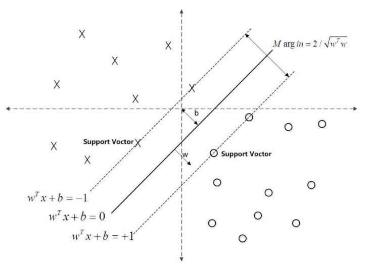支持向量机,因其英文名为support vector machine,故一般简称SVM,通俗来讲,它是一种二类分类模型,其基本模型定义为特征空间上的间隔最大的线性分类器,其学习策略便是间隔最大化,最终可转化为一个凸二次规划问题的求解。